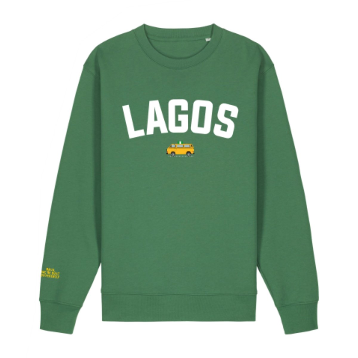 Designed with a clean LAGOS typographic print and a subtle danfo bus graphic, this sweatshirt blends cultural storytelling with a minimal, contemporary streetwear look. The relaxed unisex fit allows for easy layering, while ribbed cuffs, neckline, and hem provide structure and long-term shape retention.